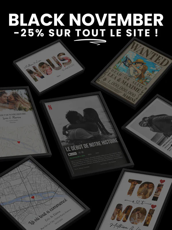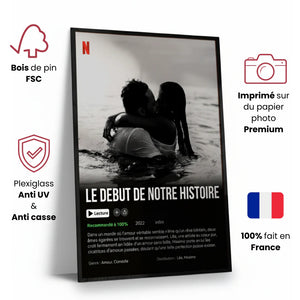 Immortalisez vos plus beaux souvenirs ou histoires dans un cadre personnalisé façon Netflix. Ajoutez votre photo, vos prénoms, un titre et créez une décoration unique qui vous ressemble.
