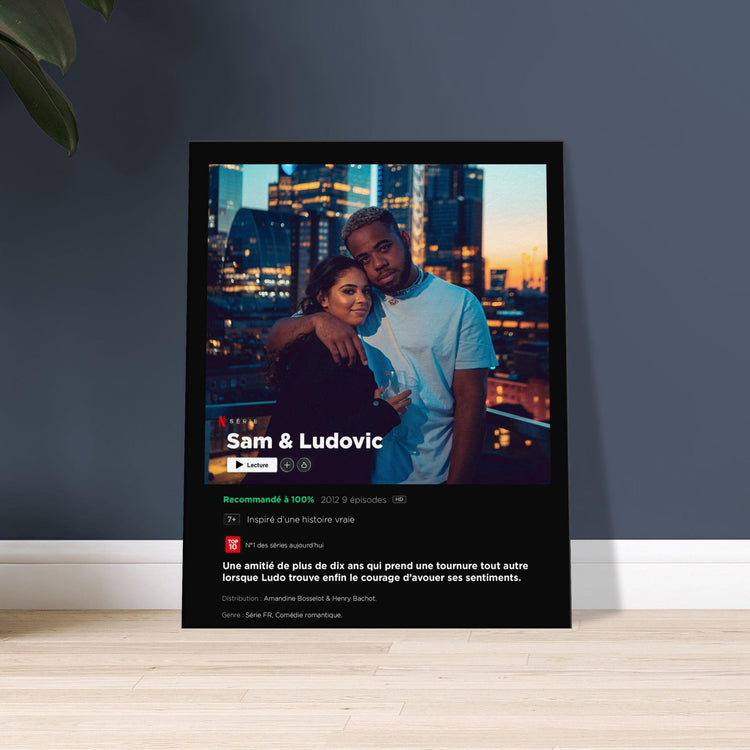 Mettez votre histoire sous les projecteurs avec notre affiche inspirée des séries Netflix. Personnalisez le titre, les acteurs et ajoutez votre photo pour un rendu ultra réaliste. Chaque affiche Netflix personnalisée est imprimée sur un papier haut de gamme et protégée avec soin. Cadeau parfait pour un couple, un ami ou un fan de séries, cette création est la plus populaire de Printflix.